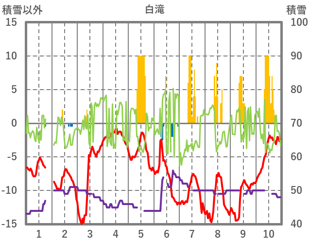 | 日 | 時 | 気温 | 降水 | 風向/風速 | 日照 | 積雪 | 降雪 |