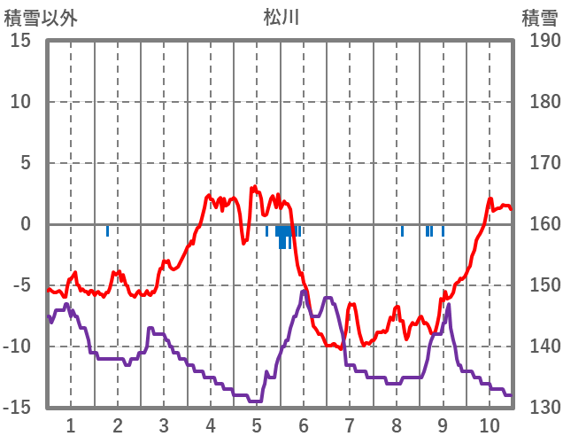 | 日 | 時 | 気温 | 降水 | 風向/風速 | 日照 | 積雪 | 降雪 |
