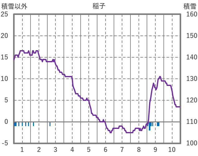 | 日 | 時 | 気温 | 降水 | 風向/風速 | 日照 | 積雪 | 降雪 |