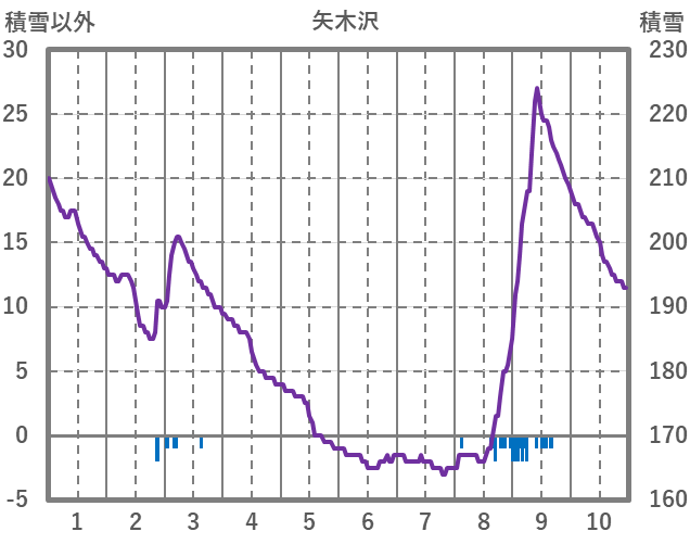 | 日 | 時 | 気温 | 降水 | 風向/風速 | 日照 | 積雪 | 降雪 |