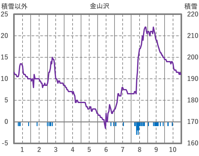 | 日 | 時 | 気温 | 降水 | 風向/風速 | 日照 | 積雪 | 降雪 |