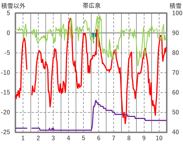 | 日 | 時 | 気温 | 降水 | 風向/風速 | 日照 | 積雪 | 降雪 |