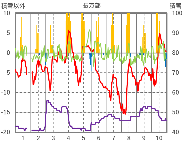 | 日 | 時 | 気温 | 降水 | 風向/風速 | 日照 | 積雪 | 降雪 |