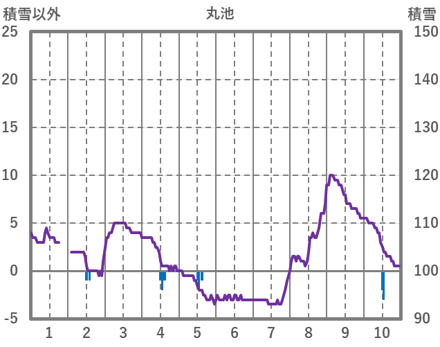 | 日 | 時 | 気温 | 降水 | 風向/風速 | 日照 | 積雪 | 降雪 |