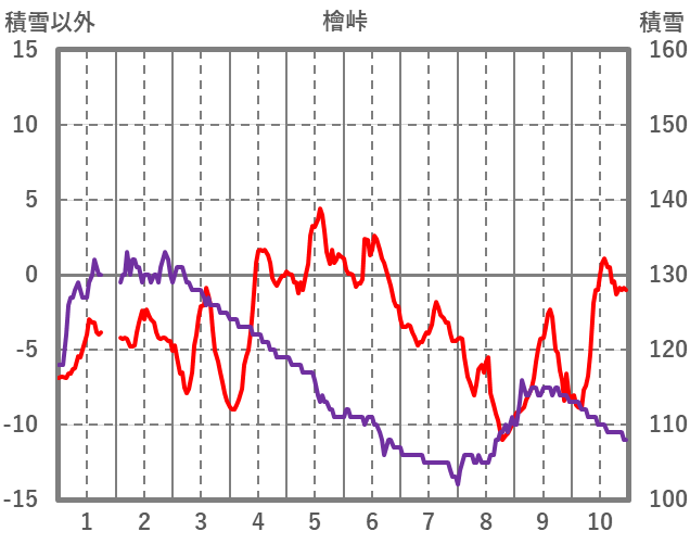 | 日 | 時 | 気温 | 降水 | 風向/風速 | 日照 | 積雪 | 降雪 |