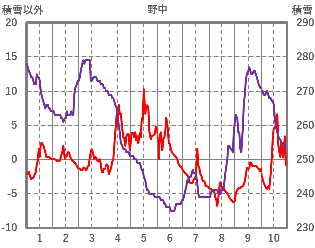 | 日 | 時 | 気温 | 降水 | 風向/風速 | 日照 | 積雪 | 降雪 |