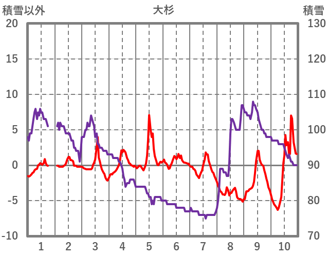| 日 | 時 | 気温 | 降水 | 風向/風速 | 日照 | 積雪 | 降雪 |