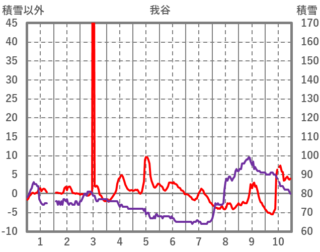 | 日 | 時 | 気温 | 降水 | 風向/風速 | 日照 | 積雪 | 降雪 |