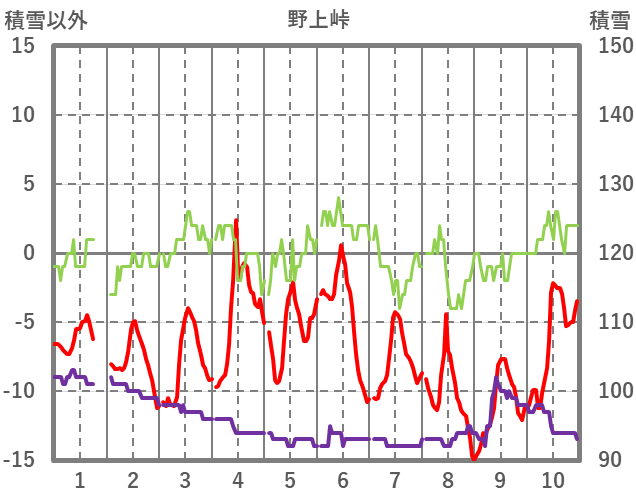 | 日 | 時 | 気温 | 降水 | 風向/風速 | 日照 | 積雪 | 降雪 |