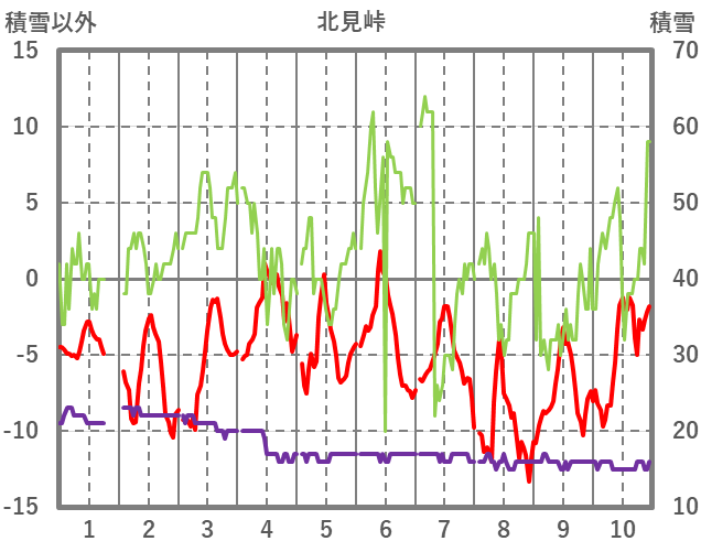 | 日 | 時 | 気温 | 降水 | 風向/風速 | 日照 | 積雪 | 降雪 |