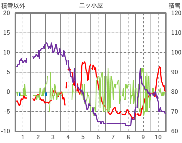 | 日 | 時 | 気温 | 降水 | 風向/風速 | 日照 | 積雪 | 降雪 |