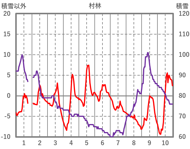 | 日 | 時 | 気温 | 降水 | 風向/風速 | 日照 | 積雪 | 降雪 |