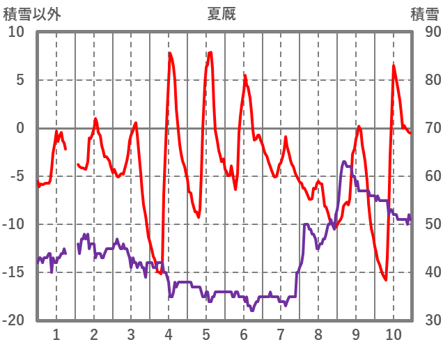 | 日 | 時 | 気温 | 降水 | 風向/風速 | 日照 | 積雪 | 降雪 |