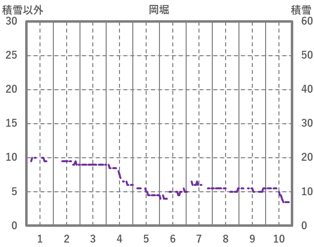 | 日 | 時 | 気温 | 降水 | 風向/風速 | 日照 | 積雪 | 降雪 |
