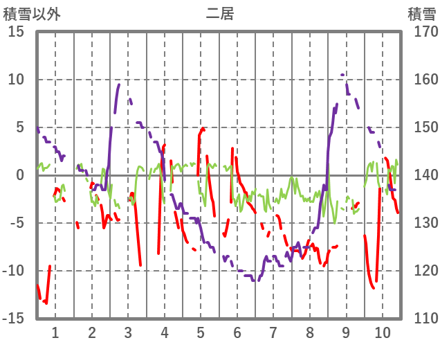 | 日 | 時 | 気温 | 降水 | 風向/風速 | 日照 | 積雪 | 降雪 |