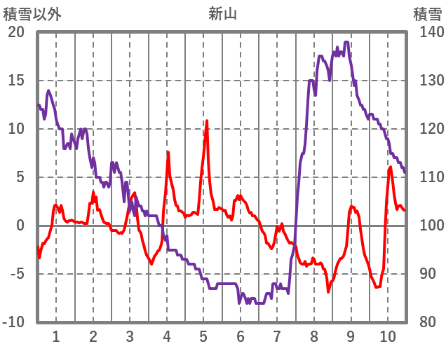 | 日 | 時 | 気温 | 降水 | 風向/風速 | 日照 | 積雪 | 降雪 |