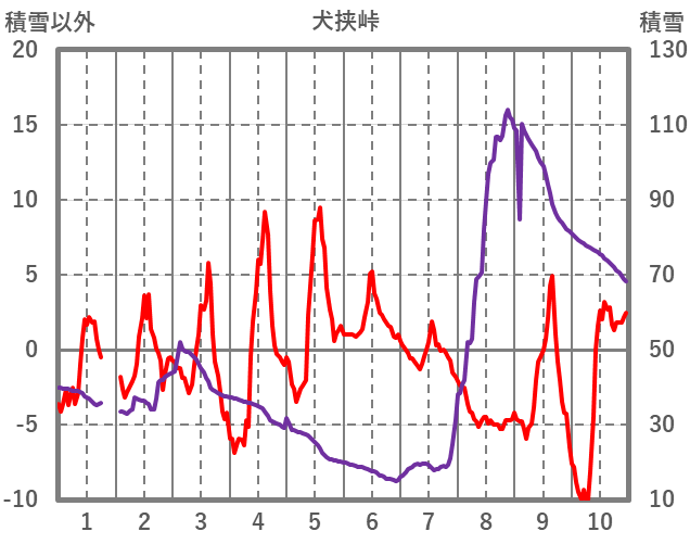 | 日 | 時 | 気温 | 降水 | 風向/風速 | 日照 | 積雪 | 降雪 |