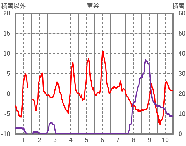 | 日 | 時 | 気温 | 降水 | 風向/風速 | 日照 | 積雪 | 降雪 |