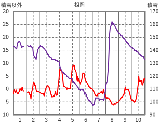 | 日 | 時 | 気温 | 降水 | 風向/風速 | 日照 | 積雪 | 降雪 |