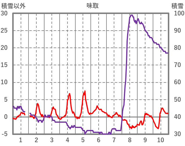 | 日 | 時 | 気温 | 降水 | 風向/風速 | 日照 | 積雪 | 降雪 |
