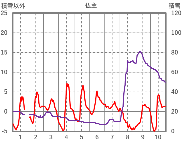 | 日 | 時 | 気温 | 降水 | 風向/風速 | 日照 | 積雪 | 降雪 |