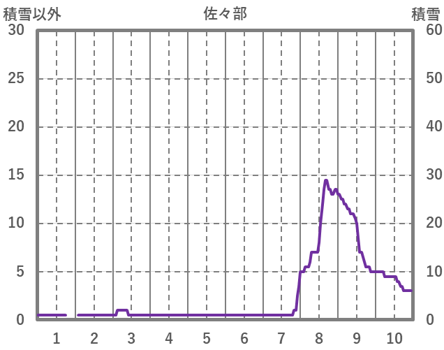 | 日 | 時 | 気温 | 降水 | 風向/風速 | 日照 | 積雪 | 降雪 |