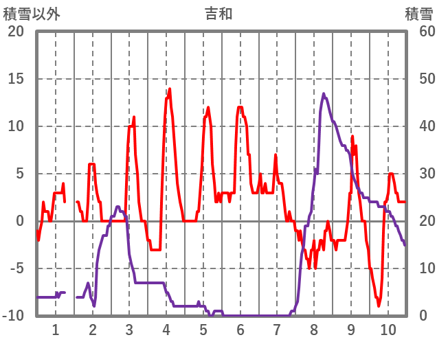| 日 | 時 | 気温 | 降水 | 風向/風速 | 日照 | 積雪 | 降雪 |