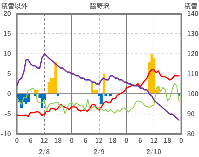 | 日 | 時 | 気温 | 降水 | 風向/風速 | 日照 | 積雪 | 降雪 |