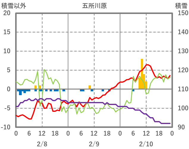 | 日 | 時 | 気温 | 降水 | 風向/風速 | 日照 | 積雪 | 降雪 |