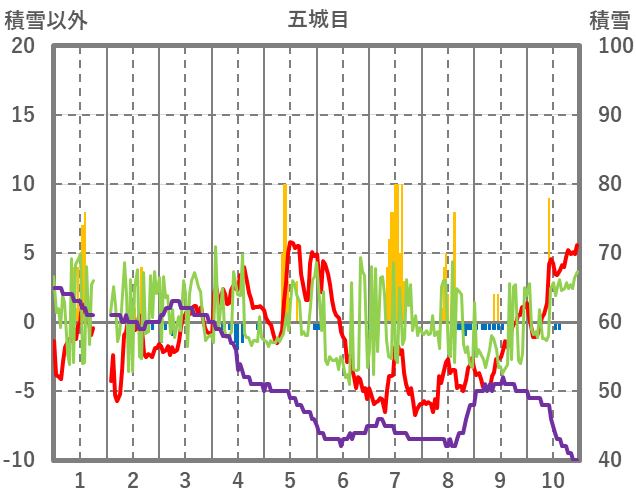 | 日 | 時 | 気温 | 降水 | 風向/風速 | 日照 | 積雪 | 降雪 |