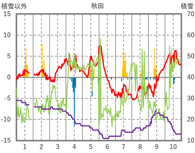 | 日 | 時 | 気温 | 降水 | 風向/風速 | 日照 | 積雪 | 降雪 |