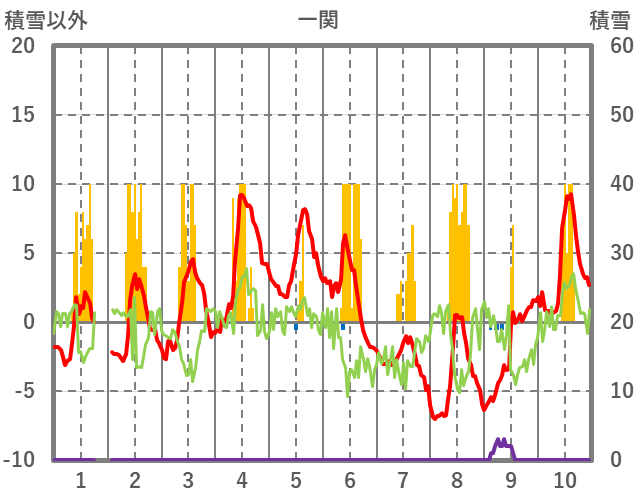 | 日 | 時 | 気温 | 降水 | 風向/風速 | 日照 | 積雪 | 降雪 |