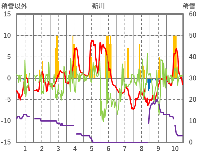 | 日 | 時 | 気温 | 降水 | 風向/風速 | 日照 | 積雪 | 降雪 |