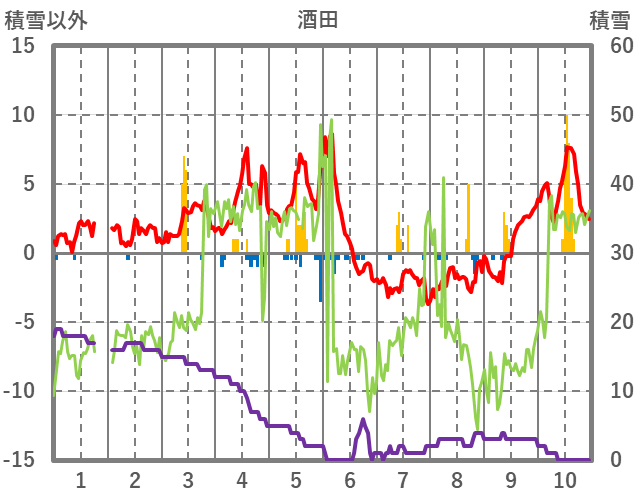 | 日 | 時 | 気温 | 降水 | 風向/風速 | 日照 | 積雪 | 降雪 |