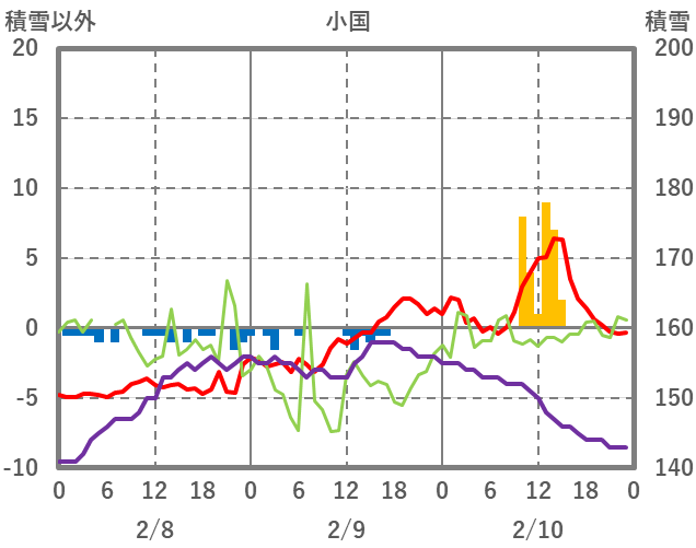 | 日 | 時 | 気温 | 降水 | 風向/風速 | 日照 | 積雪 | 降雪 |