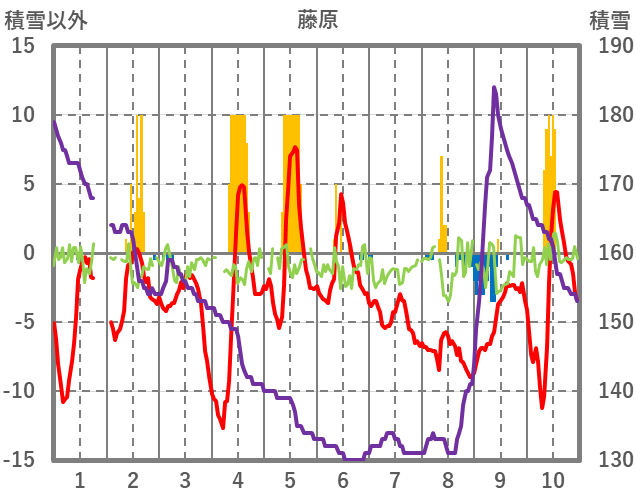 | 日 | 時 | 気温 | 降水 | 風向/風速 | 日照 | 積雪 | 降雪 |