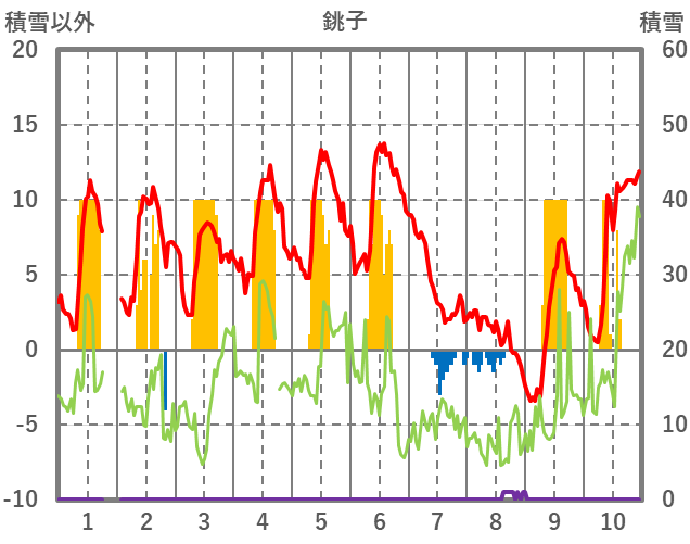 | 日 | 時 | 気温 | 降水 | 風向/風速 | 日照 | 積雪 | 降雪 |