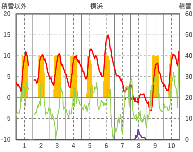 | 日 | 時 | 気温 | 降水 | 風向/風速 | 日照 | 積雪 | 降雪 |