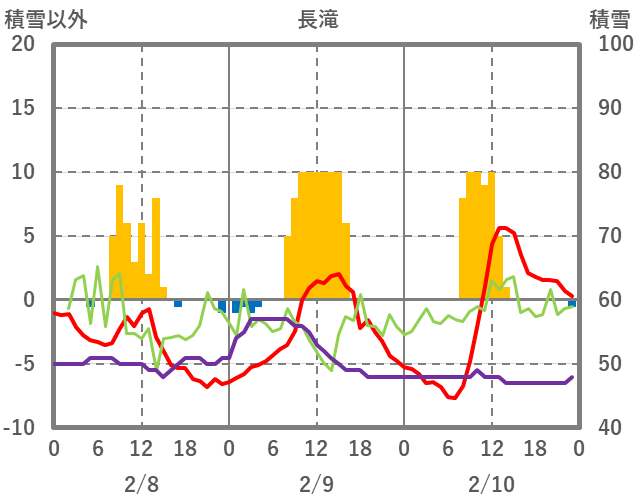 | 日 | 時 | 気温 | 降水 | 風向/風速 | 日照 | 積雪 | 降雪 |