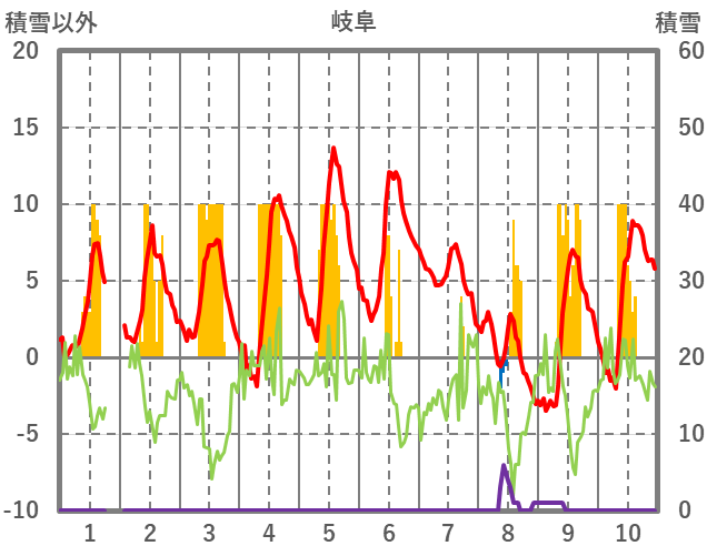 | 日 | 時 | 気温 | 降水 | 風向/風速 | 日照 | 積雪 | 降雪 |