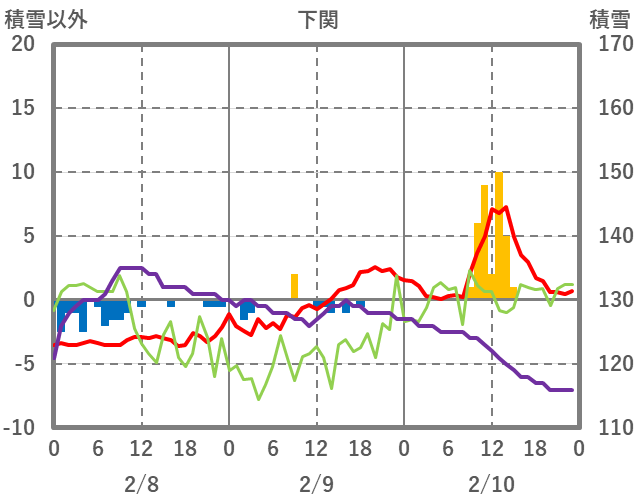 | 日 | 時 | 気温 | 降水 | 風向/風速 | 日照 | 積雪 | 降雪 |