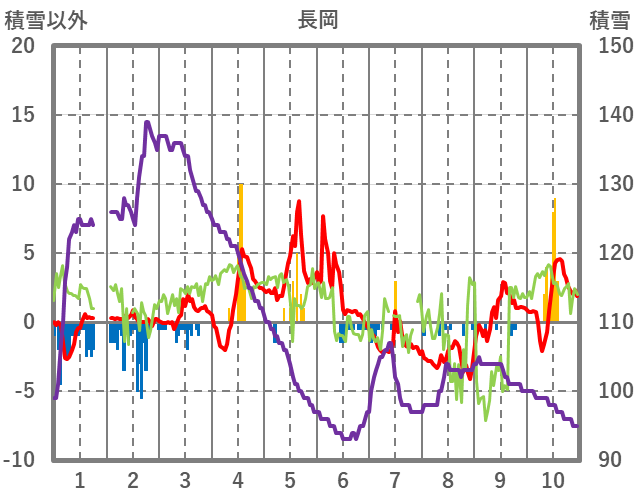 | 日 | 時 | 気温 | 降水 | 風向/風速 | 日照 | 積雪 | 降雪 |