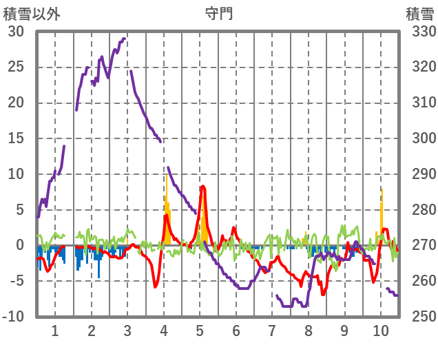 | 日 | 時 | 気温 | 降水 | 風向/風速 | 日照 | 積雪 | 降雪 |