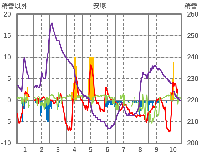 | 日 | 時 | 気温 | 降水 | 風向/風速 | 日照 | 積雪 | 降雪 |
