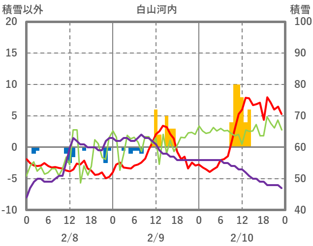 | 日 | 時 | 気温 | 降水 | 風向/風速 | 日照 | 積雪 | 降雪 |