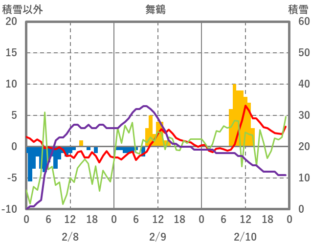 | 日 | 時 | 気温 | 降水 | 風向/風速 | 日照 | 積雪 | 降雪 |