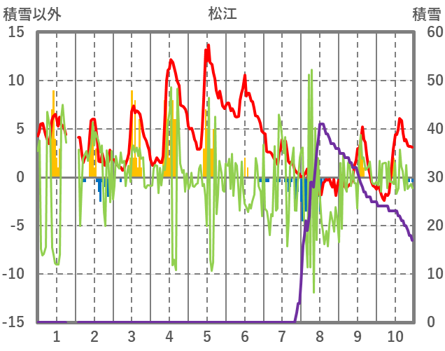 | 日 | 時 | 気温 | 降水 | 風向/風速 | 日照 | 積雪 | 降雪 |