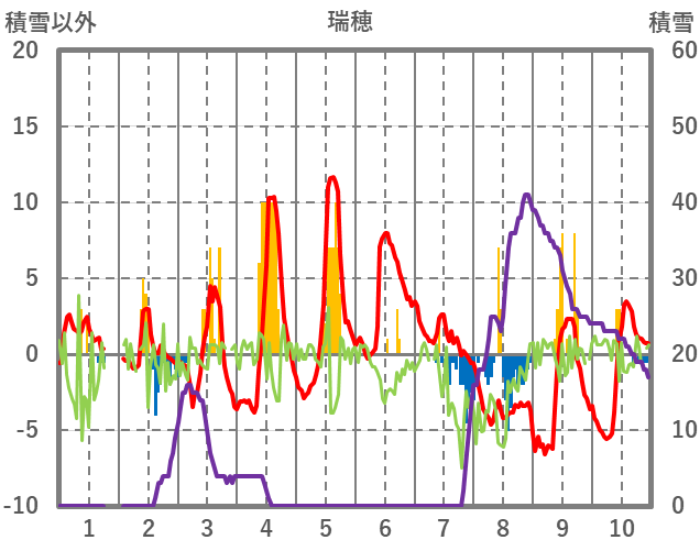 | 日 | 時 | 気温 | 降水 | 風向/風速 | 日照 | 積雪 | 降雪 |
