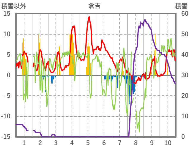 | 日 | 時 | 気温 | 降水 | 風向/風速 | 日照 | 積雪 | 降雪 |