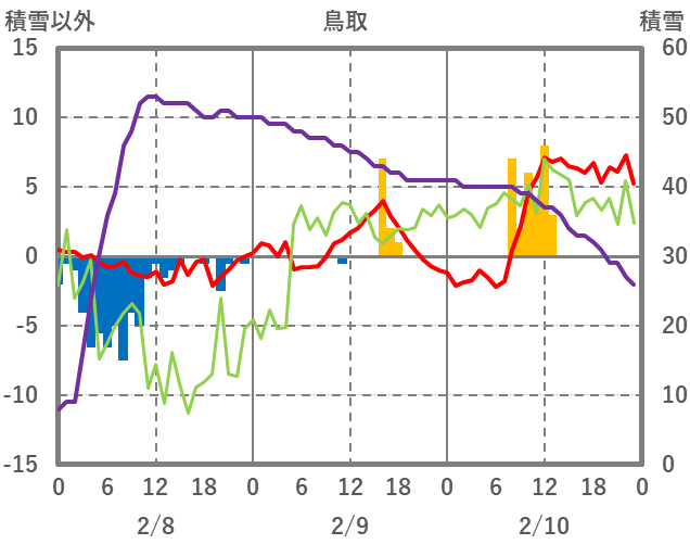 | 日 | 時 | 気温 | 降水 | 風向/風速 | 日照 | 積雪 | 降雪 |